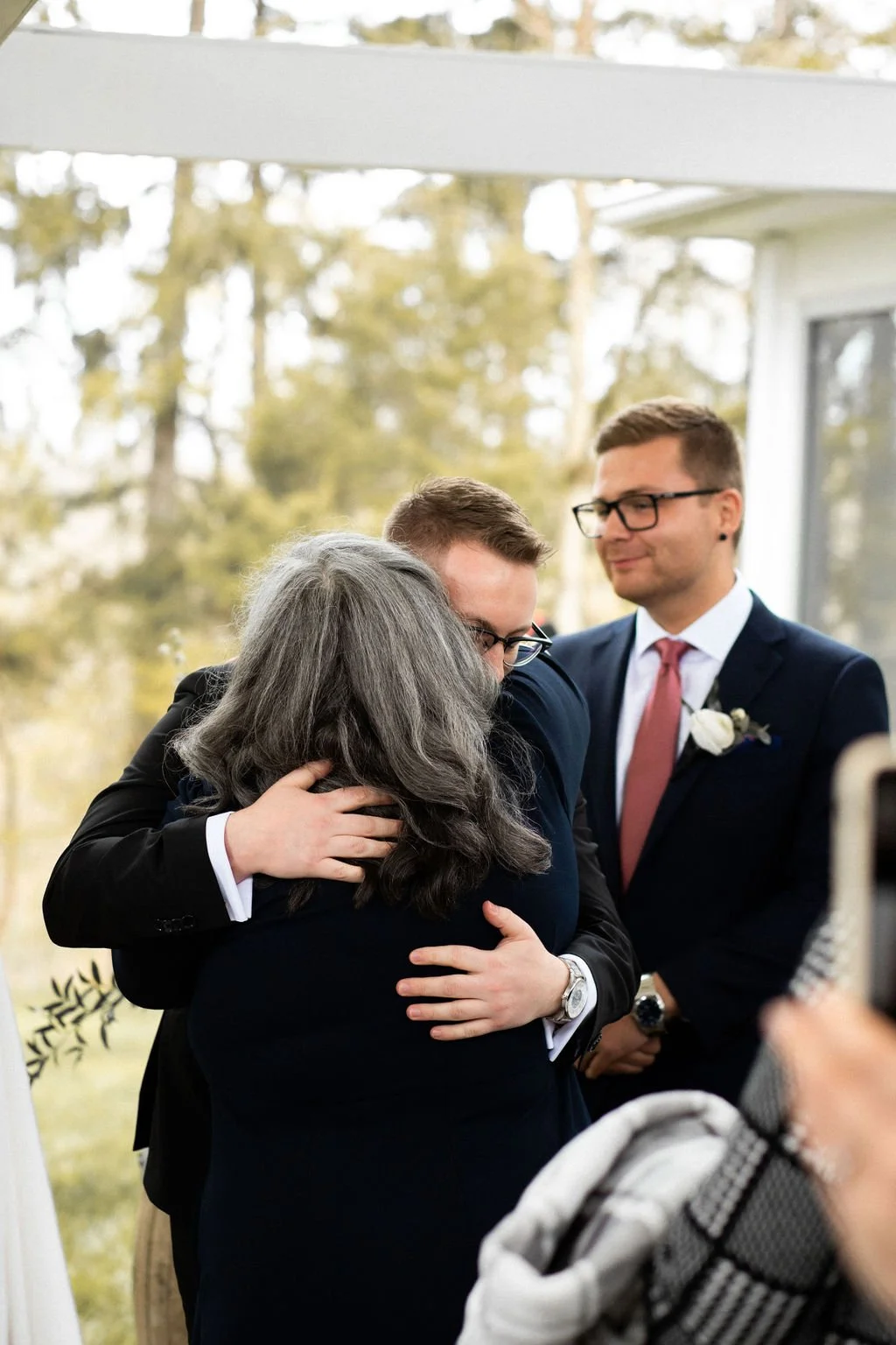 The ceremony and reception were held at the winery, with a private room and an outdoor patio creating the perfect space for their intimate celebration. After the ceremony, the cooler weather brought everyone closer together around a beautifully set table, where they shared drinks, an incredible dinner, and endless laughter. Alexis and Ryan’s playful, laid-back energy made the day feel so warm and personal—so much love, connection and good company!